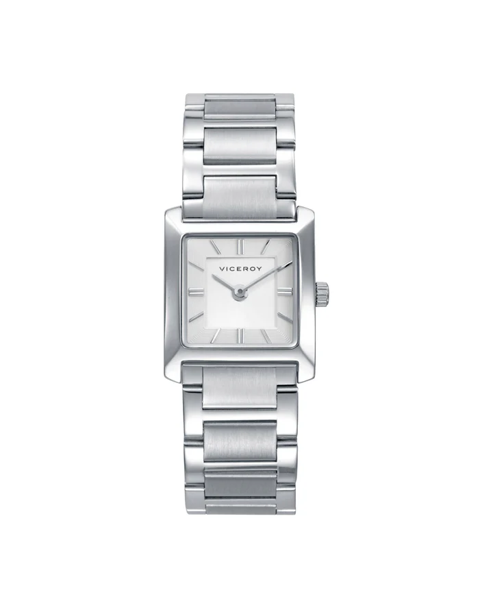 Elegancia depurada en una pieza diseñada para acompañar con estilo cada momento. Este reloj de mujer de Viceroy combina una caja de acero con un brazalete de acero de presencia impecable, rematado por un cristal mineral que protege una esfera plata de estética limpia y luminosa. Sus dos agujas en color plata y los índices sobre el dial refuerzan una lectura clara y sofisticada, mientras el movimiento de cuarzo analógico aporta precisión y fiabilidad al conjunto. Un diseño versátil, refinado y atemporal, pensado para elevar el look con un gesto de distinción sutil